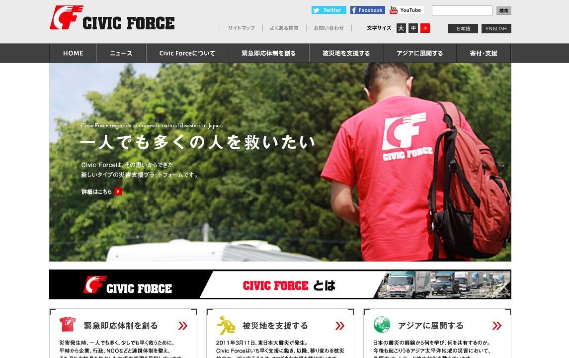 シビックフォースは緊急災害支援のプロフェッショナル団体として国内で災害が起こった時、即座に駆け付け的確で迅速な支援活動を行う合同組織です。有事の際だけでなく、日頃から災害に備える活動や被災地の支援活動などを行っています。常時寄付も受け付けているので、興味のある方はぜひ募金での参加をおすすめします。