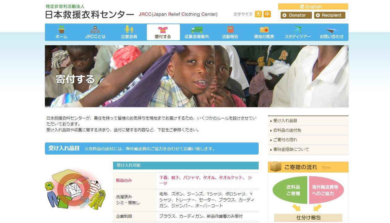 日本救援衣料センターは衣料品の寄贈を行っている認定NPO法人です。世界各地の難民や被災者などを対象として衣料品を寄贈する活動をしています。